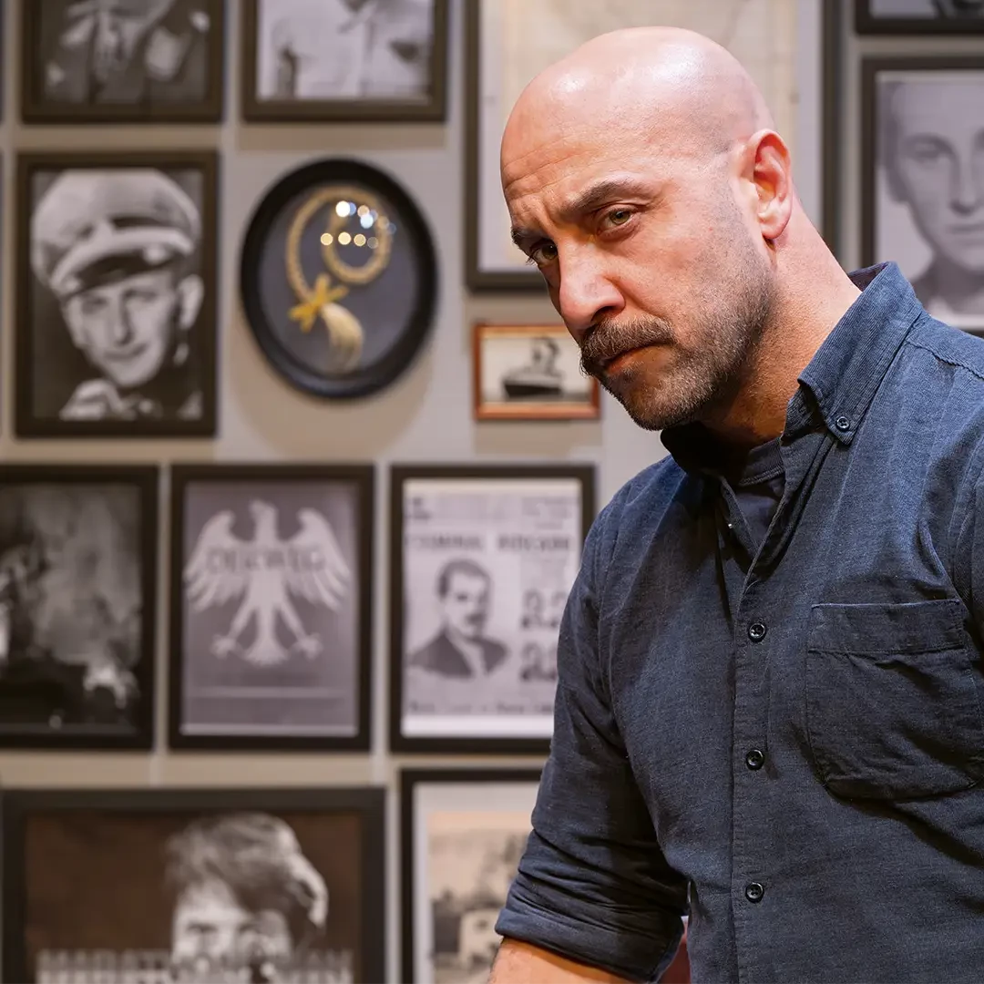 Le spectacle débute par son arrivée à la douane argentine avec une valise contenant des seringues sous-cutanées. Il a fui l’Allemagne parce que son pays, “malheureusement”, a perdu la guerre. Un véritable coup de poing à l’âme de toute la salle.